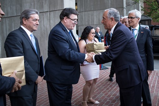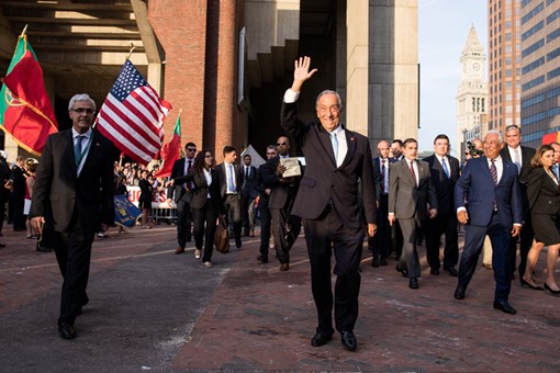Acompanhado pelo Primeiro-Ministro, António Costa, pelo Presidente do Governo Regional dos Açores, Vasco Cordeiro, e pelo Embaixador de Portugal nos EUA, Domingos Fezas Vital, o Presidente da República foi recebido na City Hall pela Comunidade Portuguesa do Massachusetts e por representantes do Mayor de Boston, Martin Walsh.