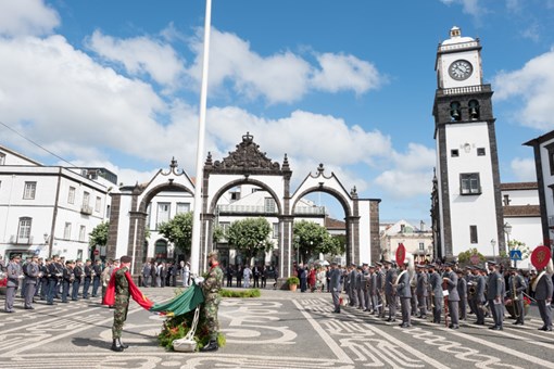 Içar da Bandeira Nacional em Ponta Delgada no início das Comemorações do Dia de Portugal