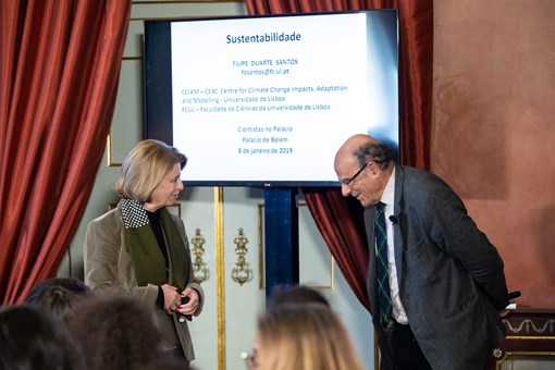 O Presidente Marcelo Rebelo de Sousa esteve presente no primeiro dia da segunda edição do Programa “Cientistas no Palácio de Belém”, tendo usado da palavra após assistir à conversa conduzida pelo cientista Filipe Duarte Santos com duas turmas de alunos do ensino secundário.