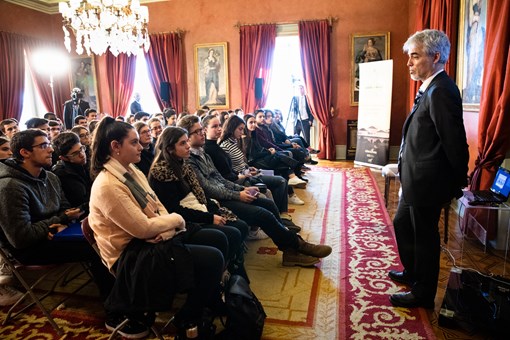 Estiveram presentes, nesta sessão, alunos do 12.º ano do Colégio Valsassina em Lisboa e alunos da Escola Secundária da Maia na Maia.