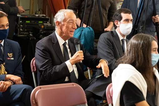 O Presidente da República esteve presente no décimo primeiro encontro do Programa “Artistas no Palácio de Belém”, tendo participado no diálogo que o artista plástico José de Guimarães manteve com os alunos da Escola Secundária da Gafanha na Gafanha da Nazaré, Aveiro.