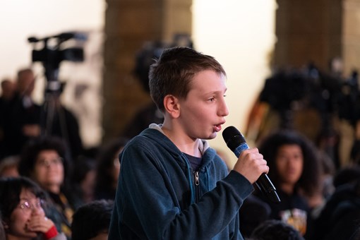 Estiveram presentes nesta sessão os alunos da Escola Básica Avelar Brotero, em Odivelas, da Escola Básica e Secundária Dr. Ferreira da Silva, em Oliveira de Azeméis, da Escola Secundária de Gago Coutinho, em Alverca do Ribatejo, da Escola Secundária Diogo de Macedo, em Vila Nova de Gaia, da Escola Secundária D. Inês de Castro, em Alcobaça e de Lisboa, a Escola Básica e Secundária D. Filipa de Lencastre, a Escola Básica 2, 3, Bairro Padre Cruz, a Escola Secundária Rainha Dona Leonor e o Colégio do Bom Sucesso.