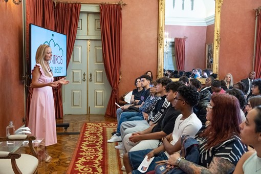 Durante a sessão, Bárbara Norton de Matos manteve um diálogo, sobre o seu percurso artístico e de vida, com alunos do 10.º, 11.º e 12.º ano da Escola Secundária de Sacavém.