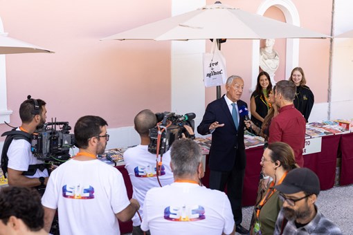 O Presidente da República começou o segundo dia da Festa do Livro passeando pelos jardins do Palácio de Belém à conversa com Diana Chaves e João Baião, durante o programa da Casa Feliz, visitando os stands das editoras e convivendo com todos os visitantes.