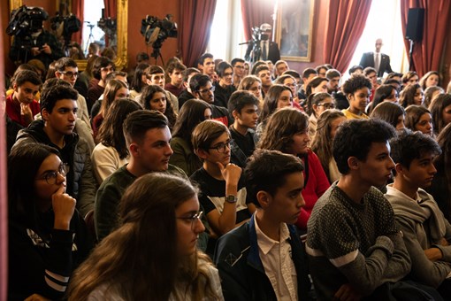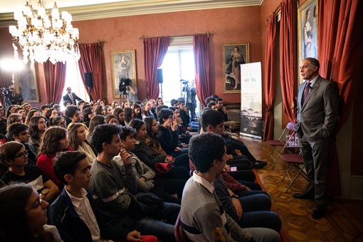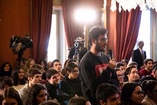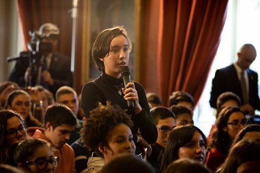 O Presidente Marcelo Rebelo de Sousa esteve presente no sexto dia do Programa “Jornalistas no Palácio de Belém”, onde assistiu ao debate conduzido pelo jornalista Rodrigo Guedes de Carvalho com alunos do ensino secundário, e no qual teve uma intervenção.