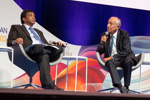 A participação dos dois Presidentes no evento aconteceu no âmbito da Visita de Estado que o Presidente da República das Maurícias está a realizar a Portugal.