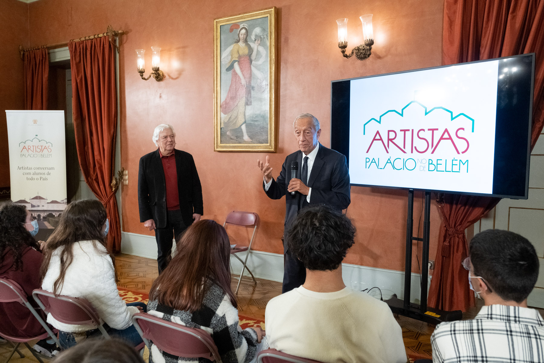 Em cada sessão do Programa “Artistas no Palácio de Belém”, aberto à participação de escolas dos ensinos básico e secundário de todo o país, o artista convidado apresenta a sua obra e percurso artístico, seguindo-se um diálogo com os alunos presentes.